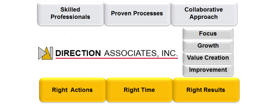 Direction Associates, Inc. (DAI) is an international management consulting firm dedicated to helping clients achieve increased profitability and long-term growth. For more than 20 years DAI has served a wide range of product and service industries providing assistance to businesses who are faced with challenges such as: significant market disruptions, transitions in ownership/management, poor financial performance, or selecting and implementing appropriate growth alternatives.